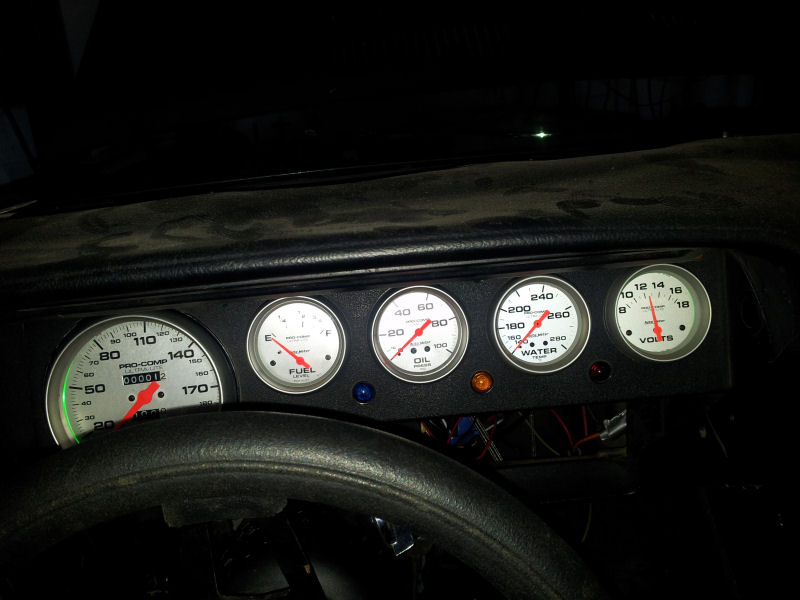 Most of the instruments in the factory dash did not work due to the fire behind the ammeter and perhaps old age so I set out to build a new cluster using Autometer gauges-some of which I found on Ebay. I used mechanical gauges for the oil pressure and water temp. I used l.e.d.'s for the turn signals and warning lights plus in the gauges for lighting. In the end, I have eliminated much of the factory under dash wiring and ran a new wire from the ignition through the firewall thus bypassing the bulkhead connector which is not in the best condition and which was undersized from the factory-particularly with regard to the wiring going to the ammeter and the "start/run" wiring. Using the HEI ignition, I don't need the ballast resistor which is a weak point in these cars and has been since the day they left the factory in my opinion. As this is nowhere close to being a rare car, I don't feel any need to make it just like it was when it was built. I would rather use recent technology for a better driving experience. I guess that makes me a restomodder?
