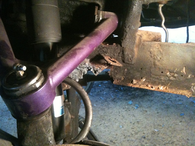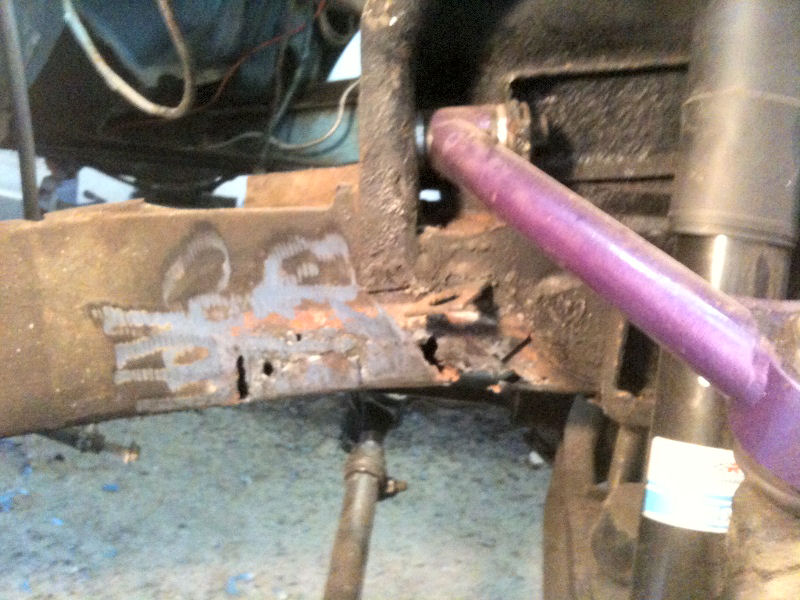 This is what we found when we cut off the angle iron patch on the driver's side...I guess it was only a matter of time before the engine and tranny fell out on the road when I hit a bump?