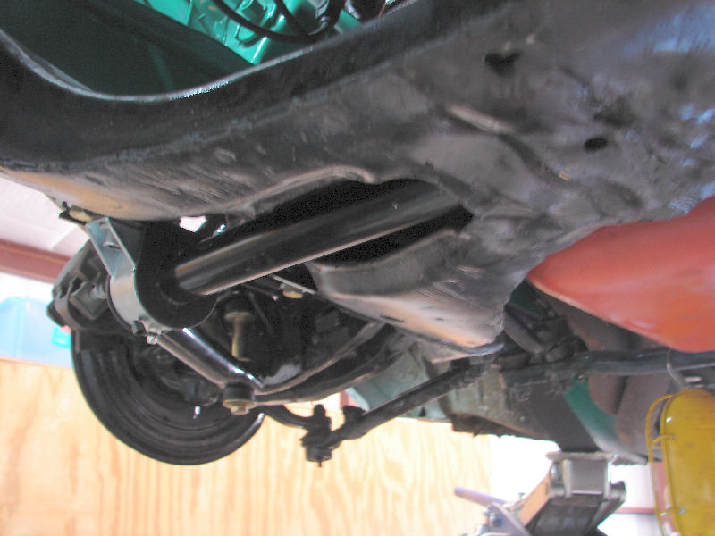 Here is the Hotchkis front sway bar installed. Instructions say it is 220% stiffer than the optional factory bar. This car had no sway bars so I don't know how t calculate that roll stiffness, but, combined with the new torsion bars that were 230% stiffer than the bars that were on the car, this thing should resemble a go kart if it does not rip the bottom out from under the car.