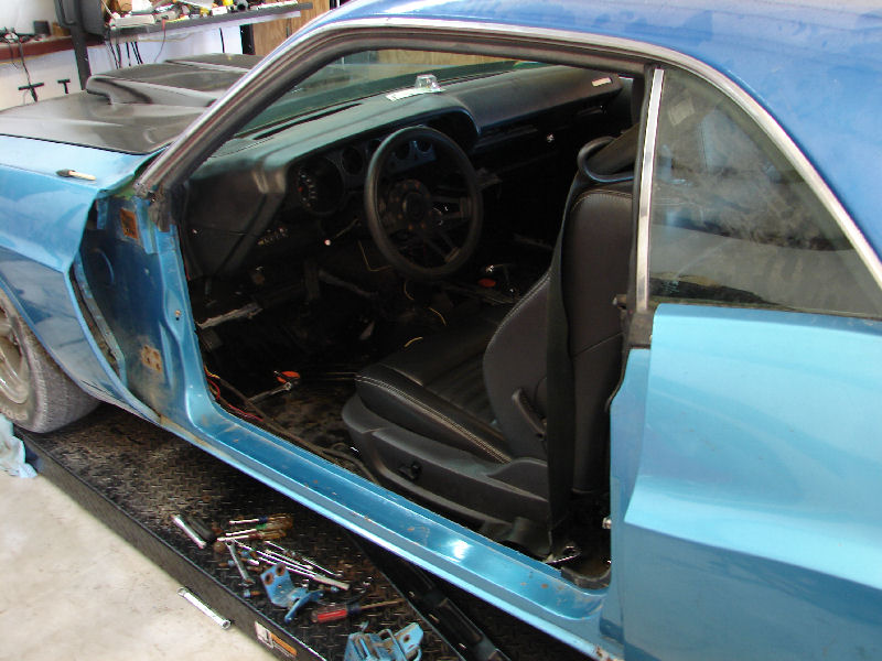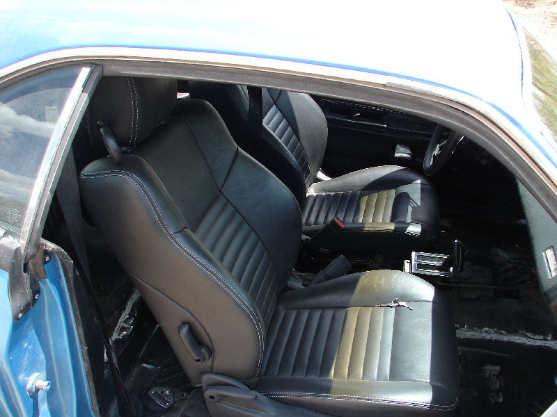 My son found a smokin' deal on some seats out of a 2009 Challenger and picked them up. We had to cut the humps out of the new floor pans and refloored them with new braces and some strong metal in order to get the new seats to sit down flat and low enuf to be able to crawl under the steering wheel. That leather feels really good and I like electric seats to boot! This picture is a mock up before welding was finished.