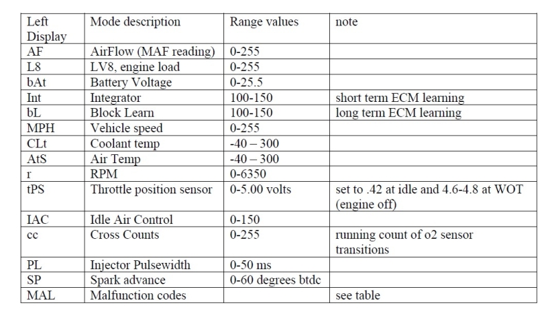 Before I address the above parameters, let me state that some of the parameters (primarily L8, Int, and BL) are specific to mass air set ups that are closed loop, and may be used for some other purpose by the programmer on those cars that are running open loop or speed density chips in the factory ECM.