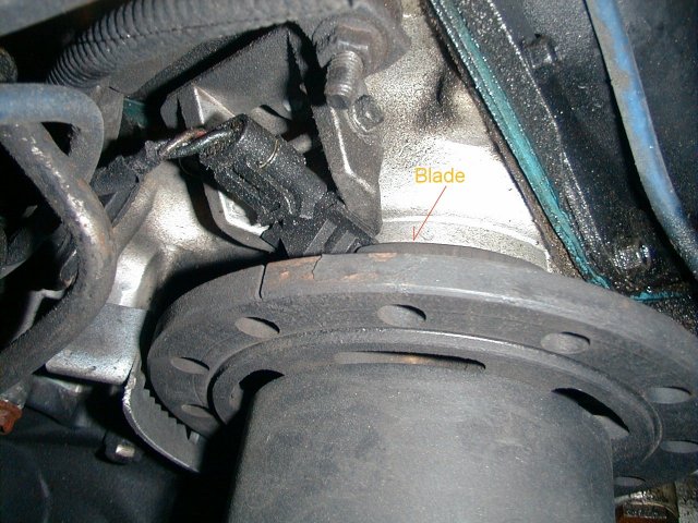 Secondly, all three blades on the damper must pass cleanly thru the slot without rubbing at any point. Be sure you check ALL three. Turn the balancer via a 28 mm socket on the bolt head until satisfied that clearances are correct. A sensor that rubs can/will cause poor performance.